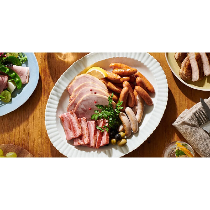 ロースハム450g・和風焼豚250g・黒胡椒パストラミ250g・ポークソーセージ230g・あらびきソーセージ230g・ポークウインナー56g×2・あらびきウインナー56g×2・ホワイトウインナー56g×2 - お召し上がり方: