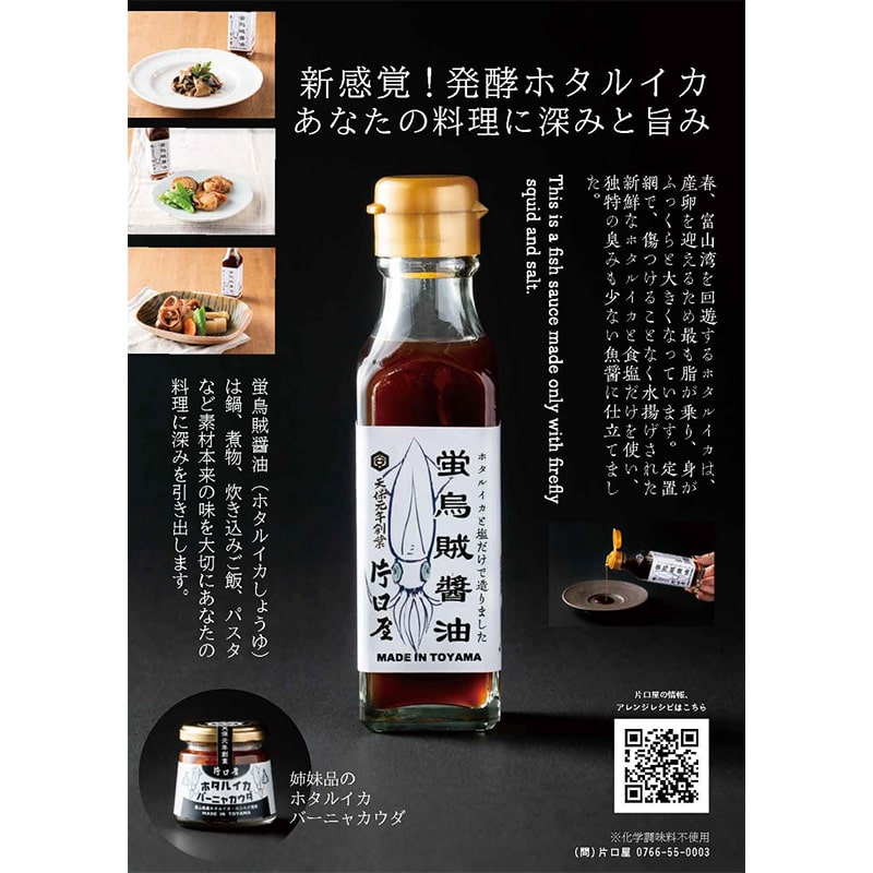 蛍烏賊醤油は、富山湾のホタルイカと塩だけを使用。