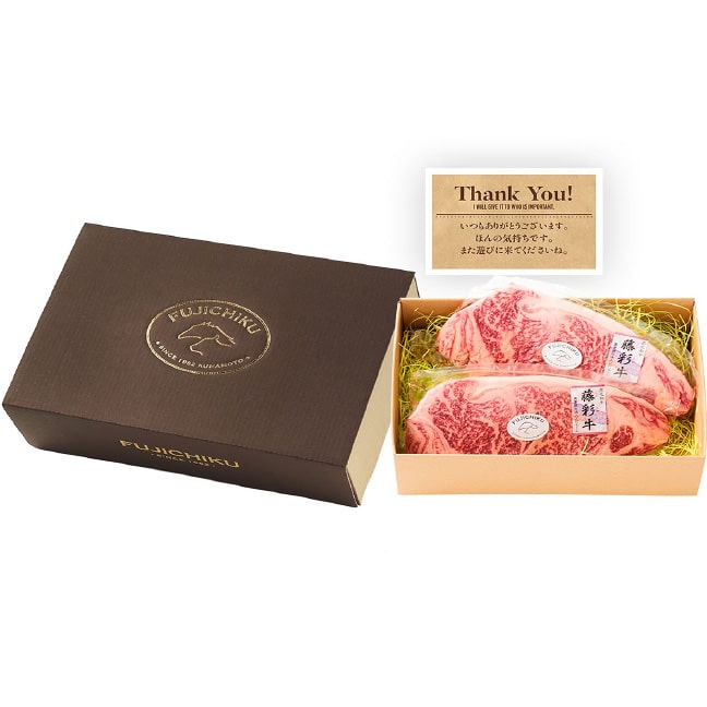 <送料込>A5-4藤彩牛 サーロインステーキ 200g×2枚【加熱用】(寄付額550円) *肉厚が堪らない、贅沢な高級部位「藤彩牛サーロイン」