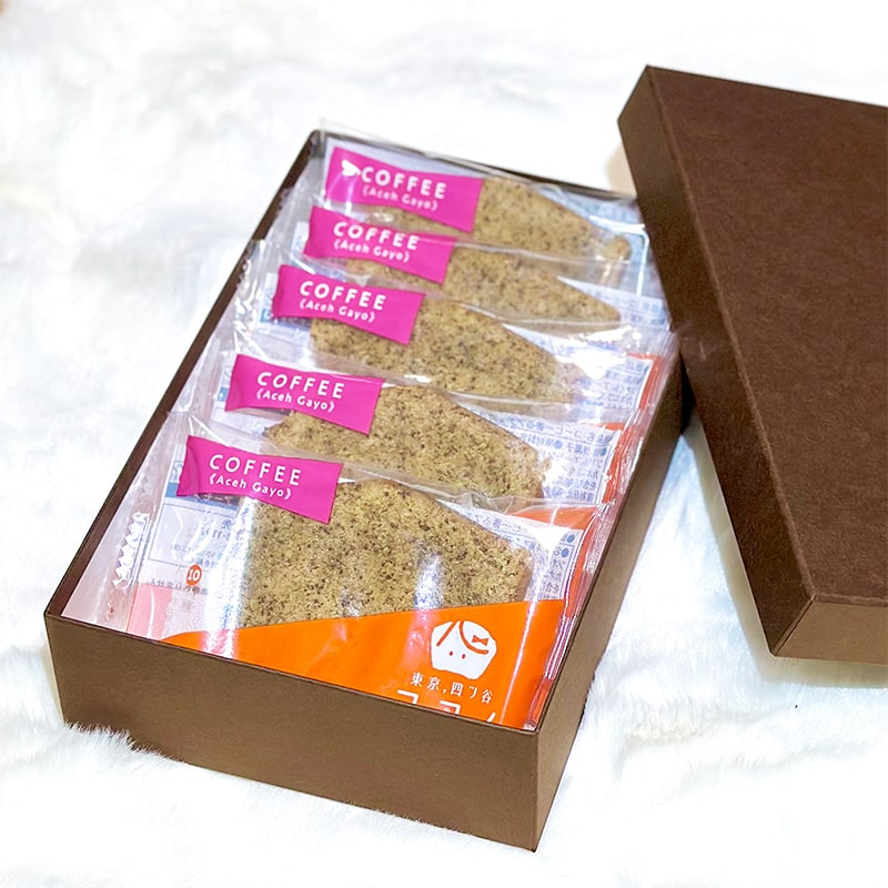 | コーヒーパウンドケーキ | 砂糖(国内製造)・小麦粉・液卵・ココナッツオイル・アーモンドパウダー・コーヒー豆・タピオカでん粉・洋酒・カカオニブ・塩/ベーキングパウダー・(一部に小麦・卵・アーモンドを含む) | 小麦・卵・アーモンド | エネルギー251kcal・たんぱく質2.85g・脂質13.6g・炭水化物26.9g・食塩相当量0.25g |