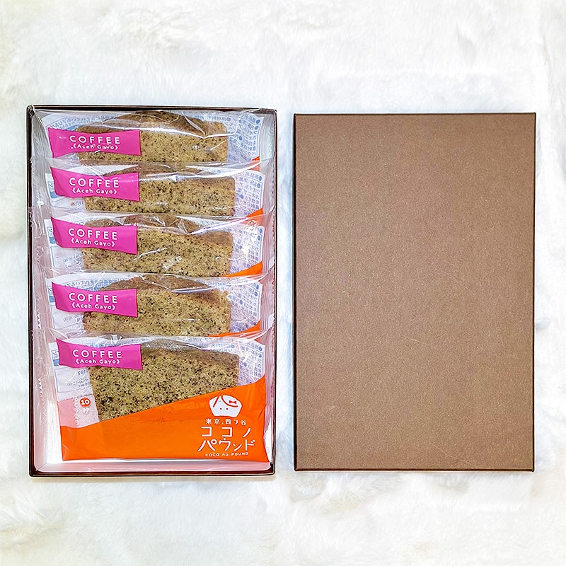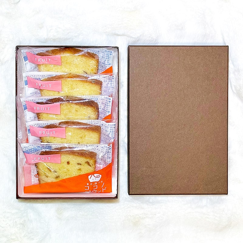 <送料込>ココノパウンド ギフトBOX 5個入り(寄付額102円) *フルーツパウンドケーキとコーヒー2種類から5個、組み合わせ自由でギフトボックスに入れさせていただきます。