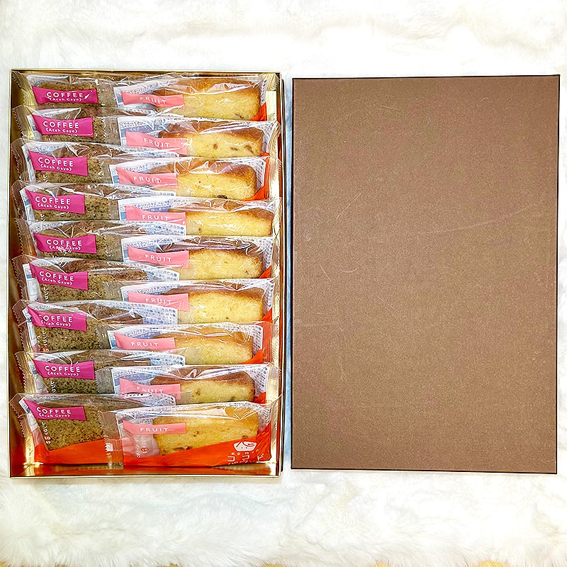 <送料込>ココノパウンド ギフトBOX 18個入り(寄付額228円) *フルーツパウンドケーキとコーヒー2種類から18個、組み合わせ自由でギフトボックスに入れさせていただきます。