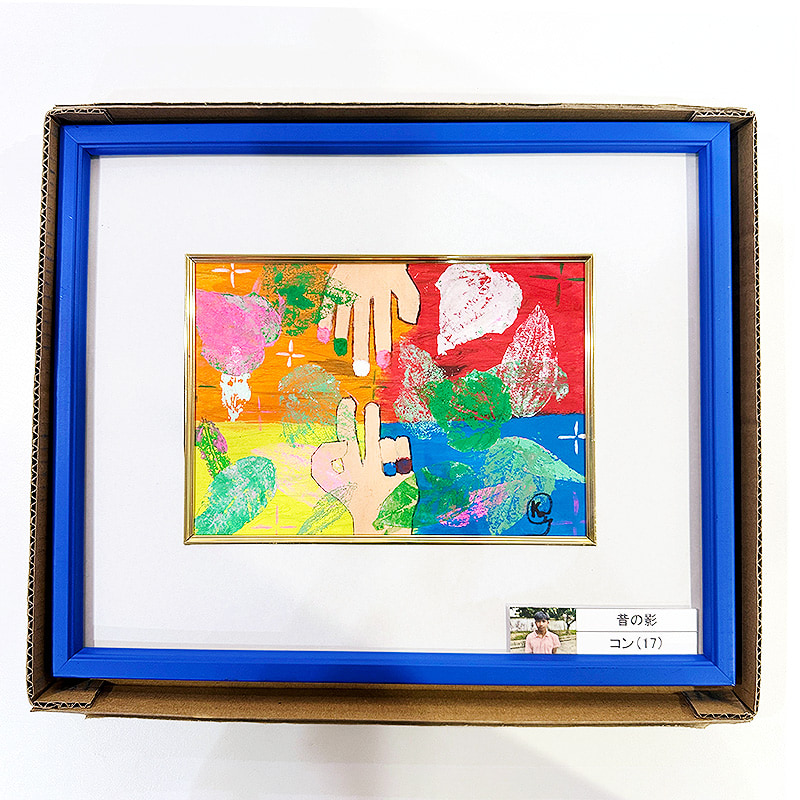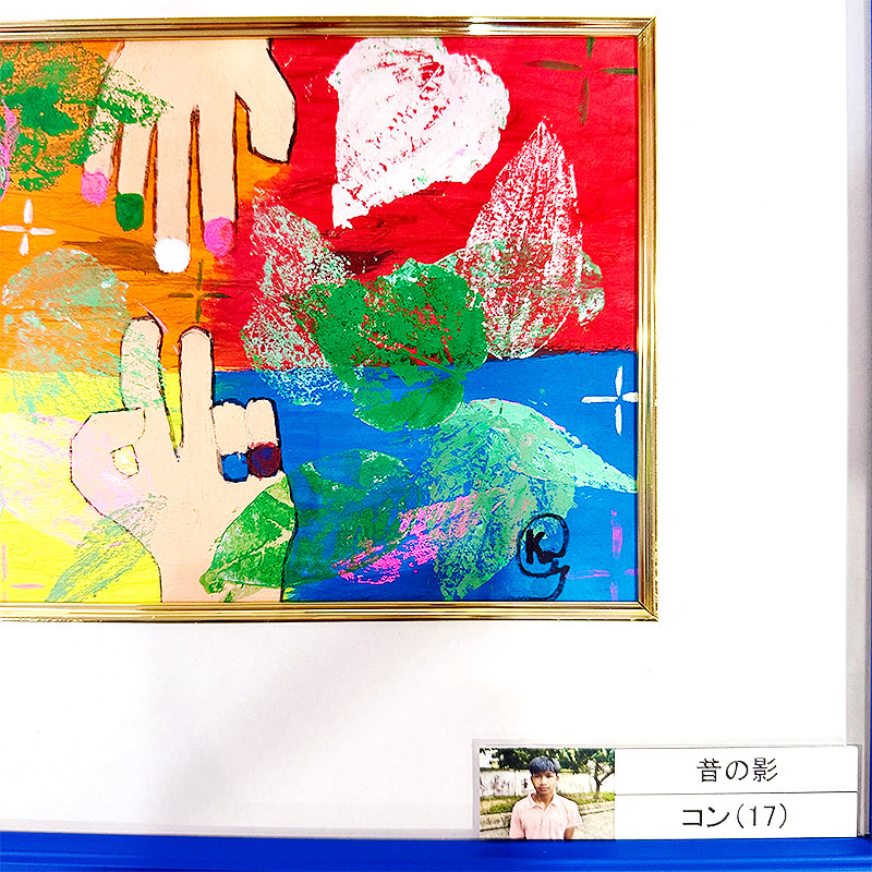緑いっぱいの施設の庭で夢中になって弟と遊んだ記憶を描いた一枚です。