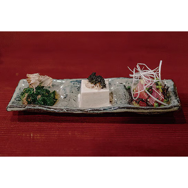 桜海老、枝豆、とうもろこしを練りこみ風味と、とろける食感にこだわった、チーズのような舌触りが特徴な生豆富。